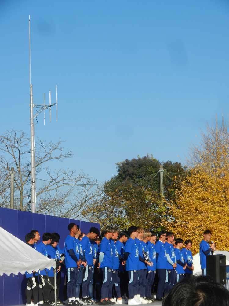 前日J2最終節大分トリニータ戦に勝利し首位長崎が引き分けに終わったため、見事逆転優勝&J1昇格を果たした水戸ホーリーホックの優勝報告会が11月30日水戸第二中学校で行われました。