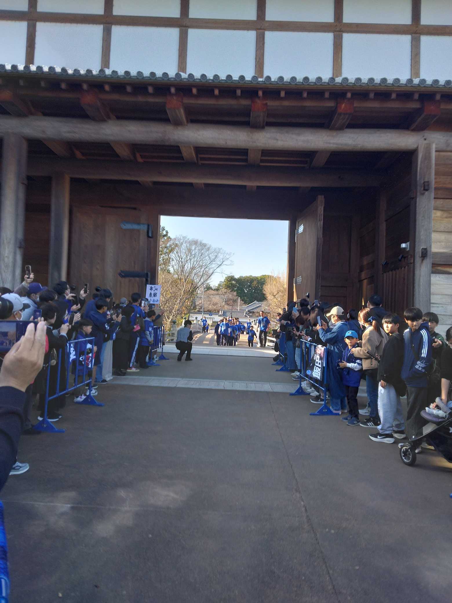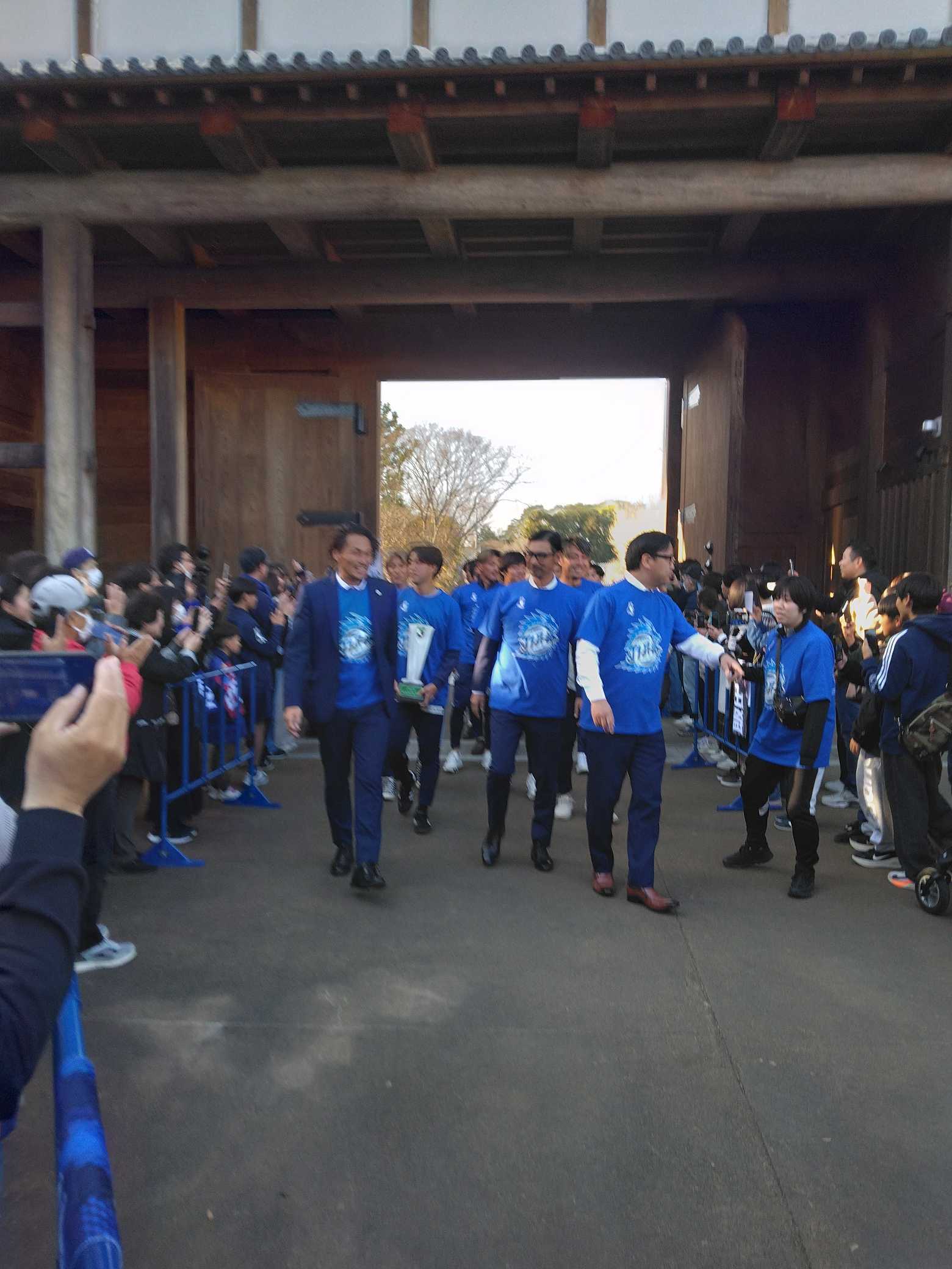 優勝報告会はホーリーホックのチーム名が水戸徳川家の葵の紋に由来するということから旧水戸城内に立つこの中学校で行われ、また再建された水戸城大手門をくぐって選手が会場の出入りをするという演出も「粋」でしたね。